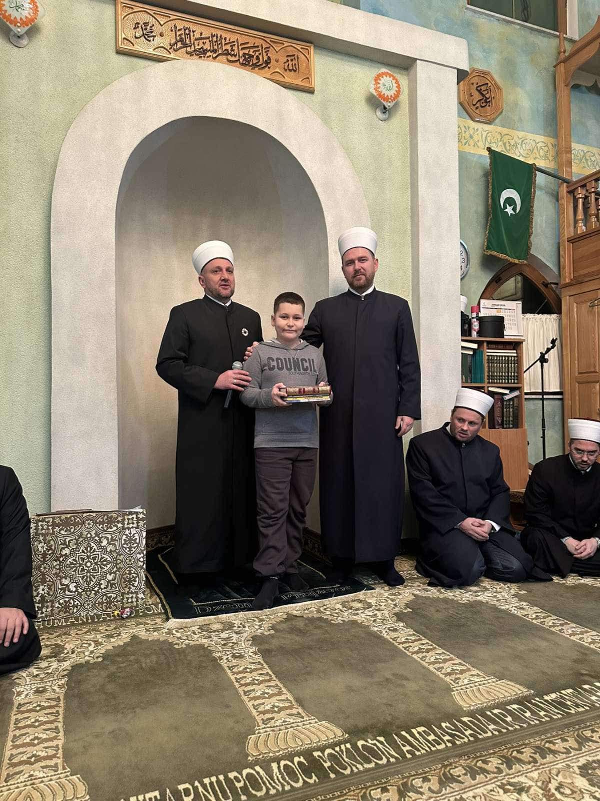 U okviru programa, Harunu Hrustanoviću, polazniku mekteba, uručen je Kur’an i prigodna hedija povodom savladane sufare.